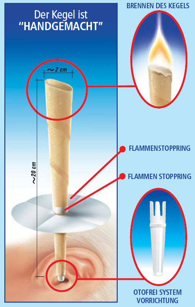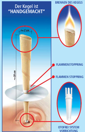 Den Kegel mit leichter Umdrehung in das Ohr einführen und anzünden.